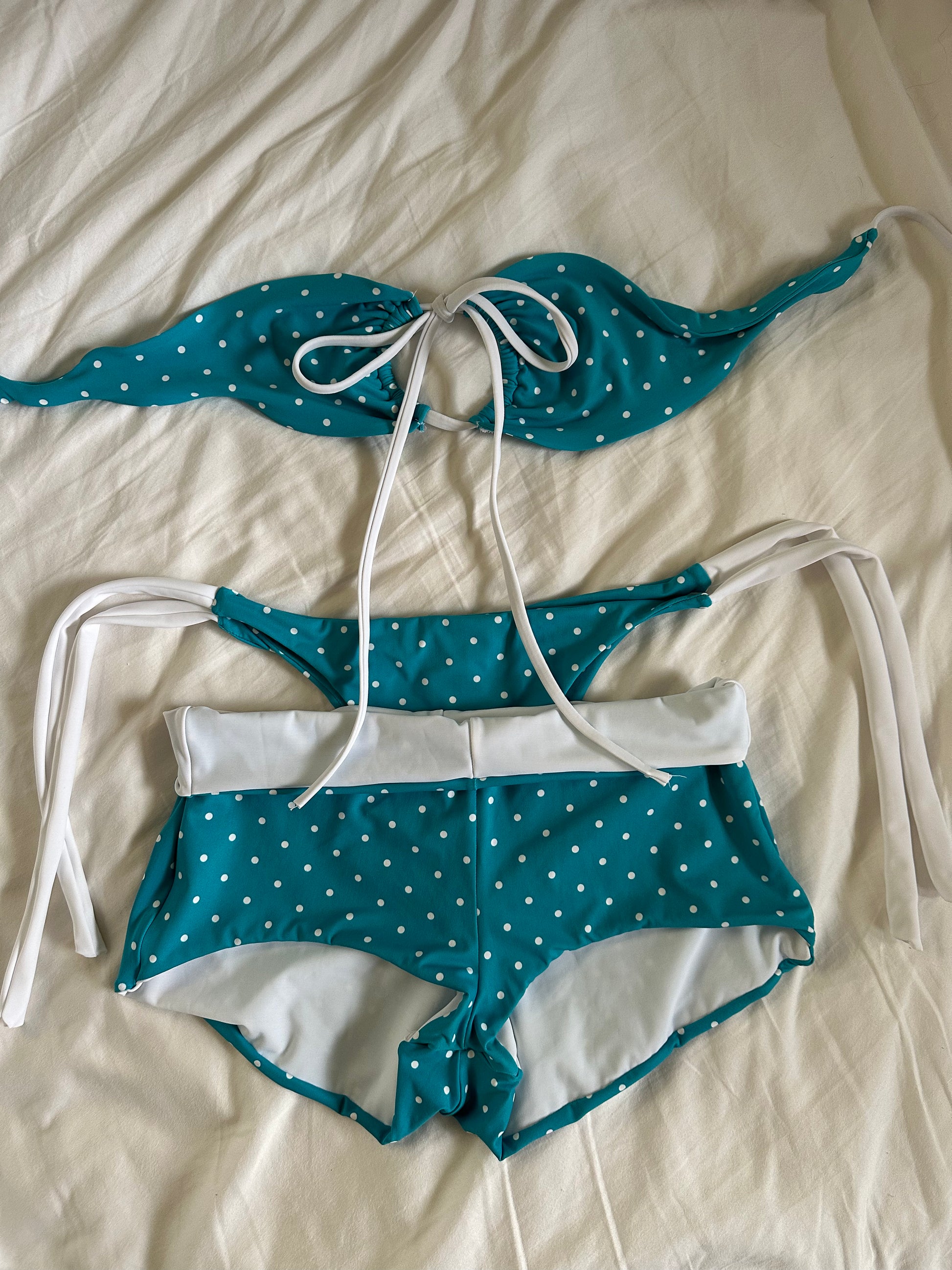 baby blue polka dot multi tie top